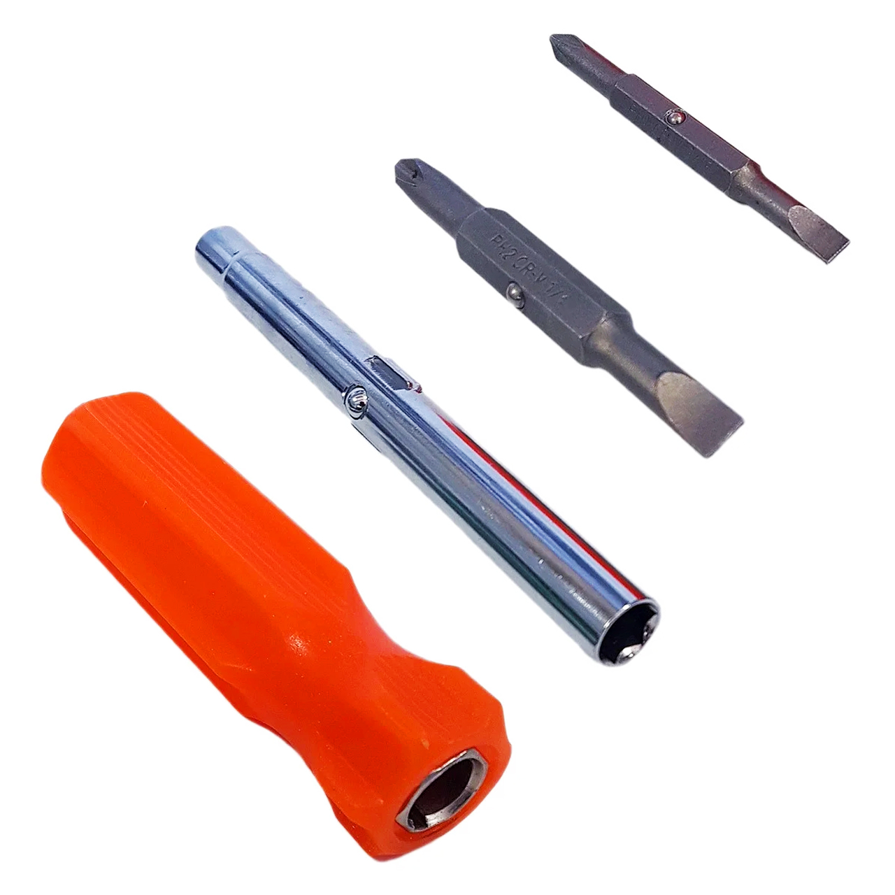 Двухсторонние биты PH2/PH1/SL3/SL6 вставляясь в нержавеющее стальное жало образуют рабочую длину стержня 75 мм.