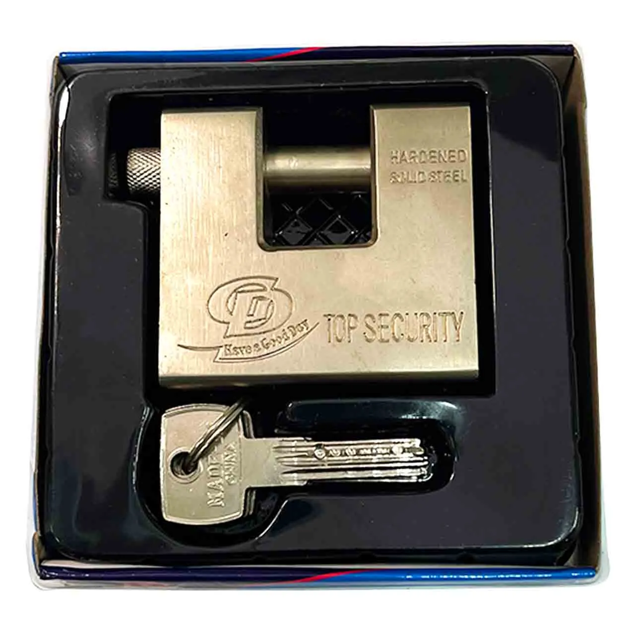 Замок имеет прямую дужку - ригель из закаленной стали, который при закрытии углубляется в корпус.
